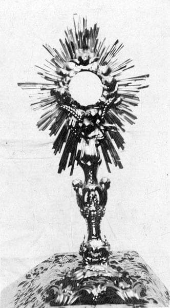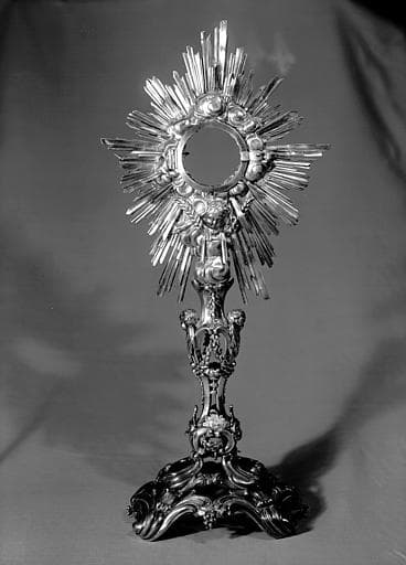 Sur une terrasse rectangulaire mouvementée s'élève le pied évidé, dans lequel s'emboîte le soleil.