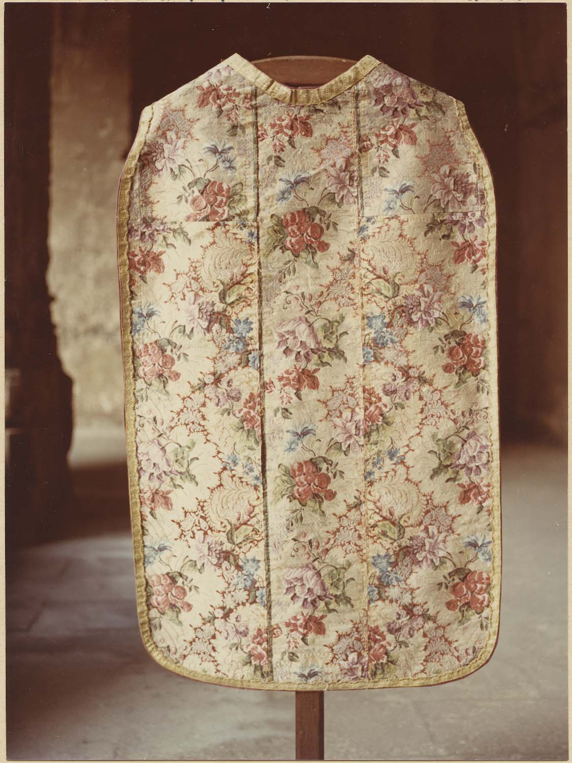 Ornement sacerdotal fait d'un brocart de soies polychromes et de fils d'or.