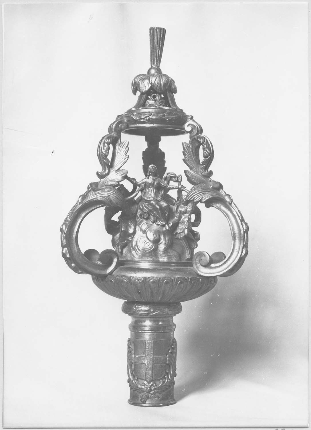 Armoiries : armes du chapitre cathédral entourées de palmes (sur la douille).