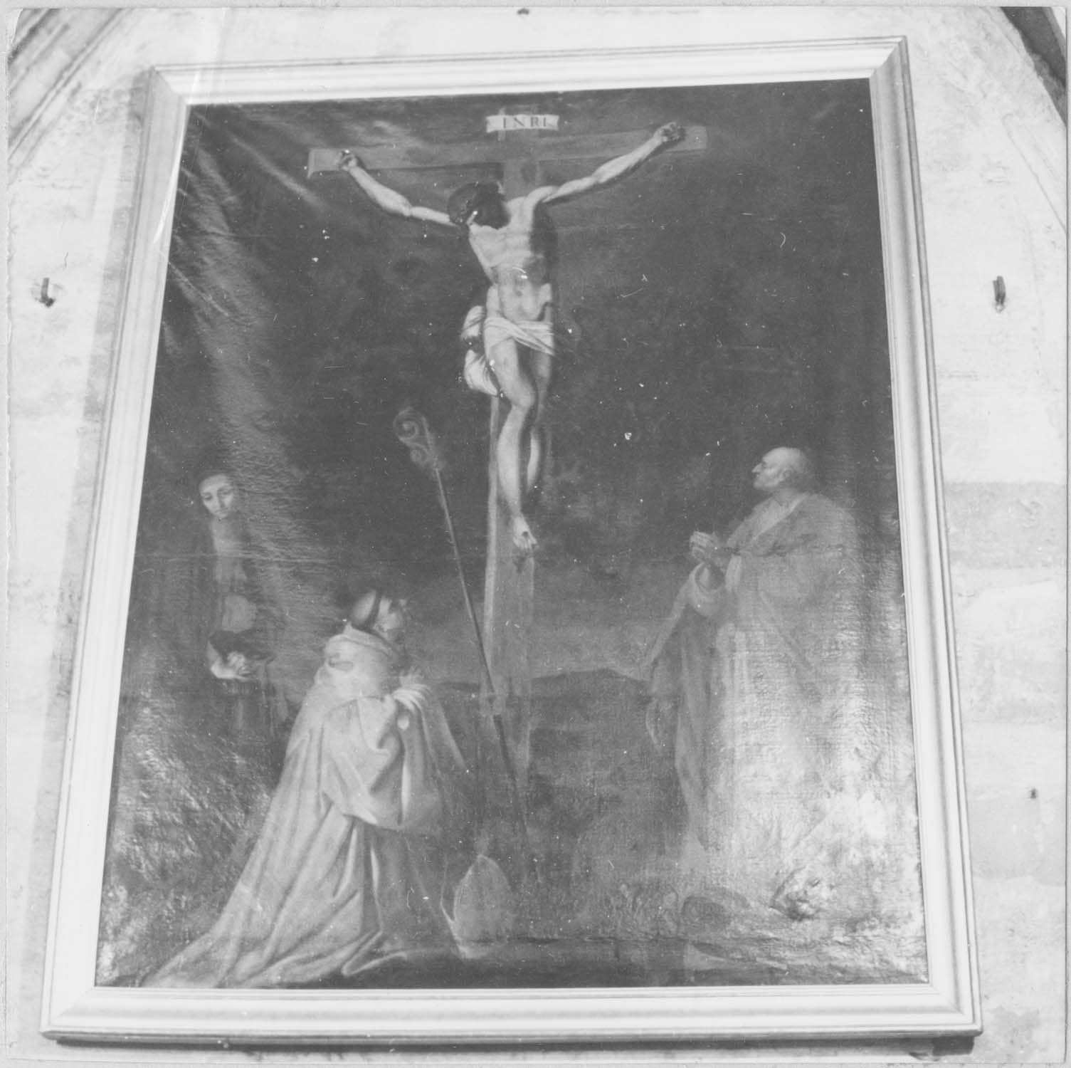 tableau : Le Christ en croix entre la Vierge, saint Bernard et saint Barthélémy