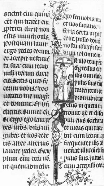 Missel et évangéliaire manuscrits sur vélin, avec enluminures, de 174 et 210 feuillets, dans une seule reliure en bois recouvert de cuir, sans fermoir.