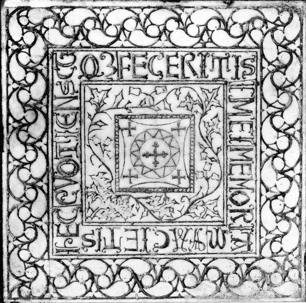 Cet autel portatif se compose d'une plaque de marbre blanc au milieu de laquelle est gravée en creux une croix entourée d'une guirlande.