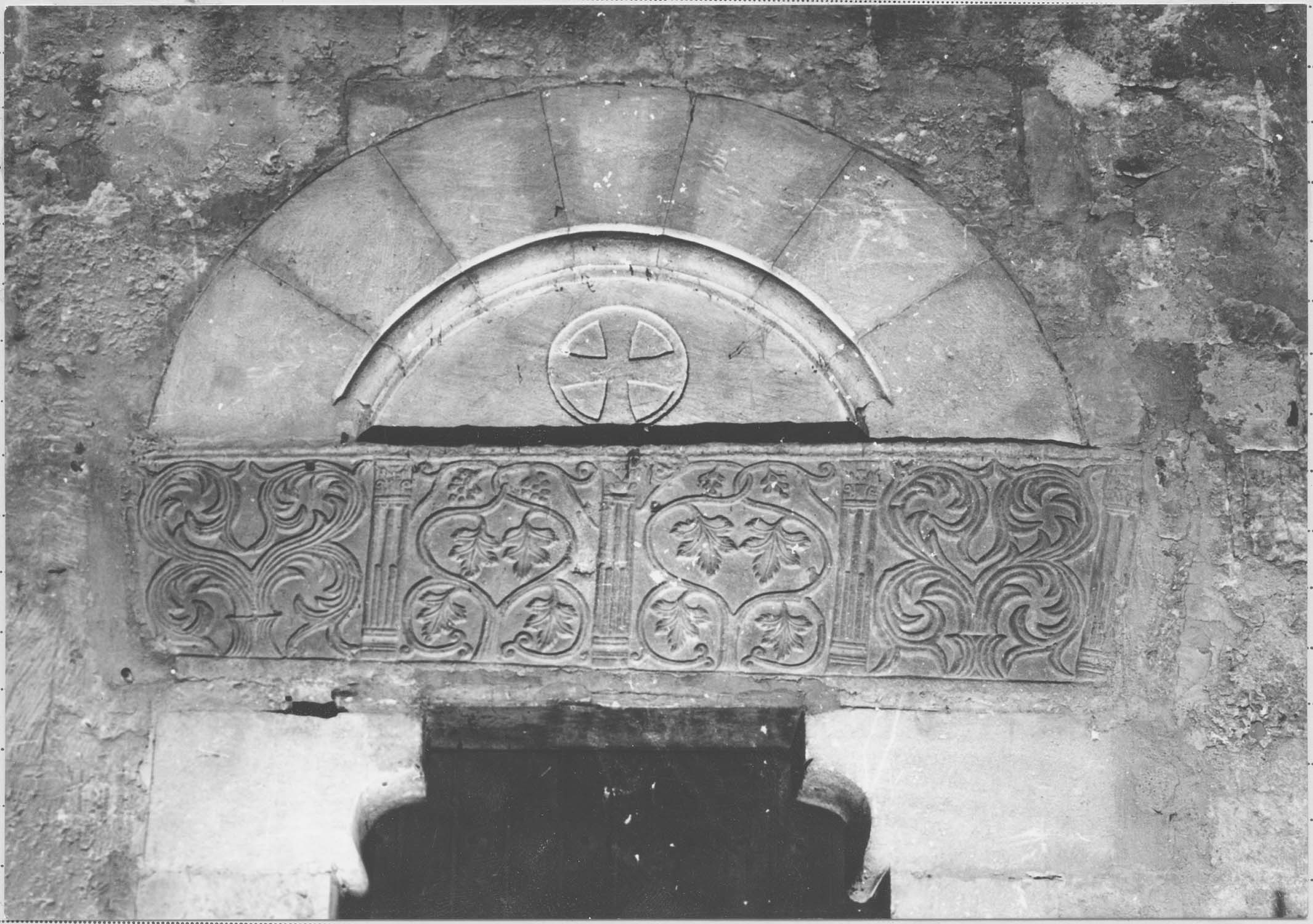 Ce sarcophage présente un décor de feuilles de vigne. Il sert de linteau à la petite porte au fond de la nef.