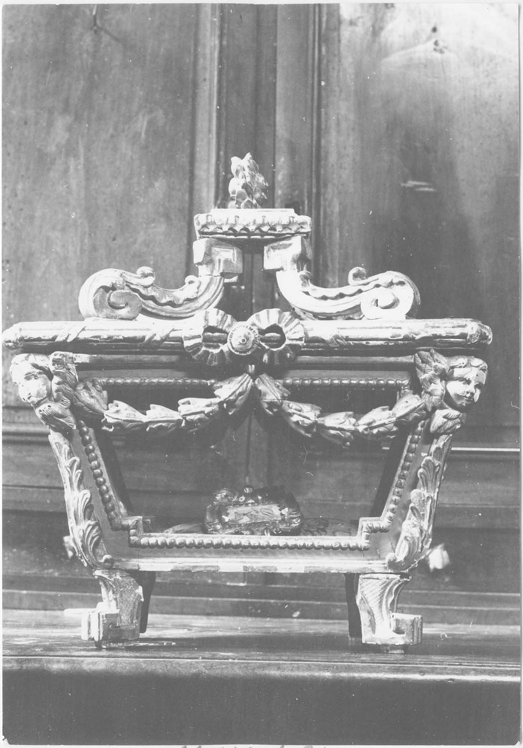 Boîtes ajourées dont l'encadrement de bois forme le décor. Elles sont fermées par un couvercle où des rinceaux soutiennent une petite plateforme qui porte un vase ou une graine.