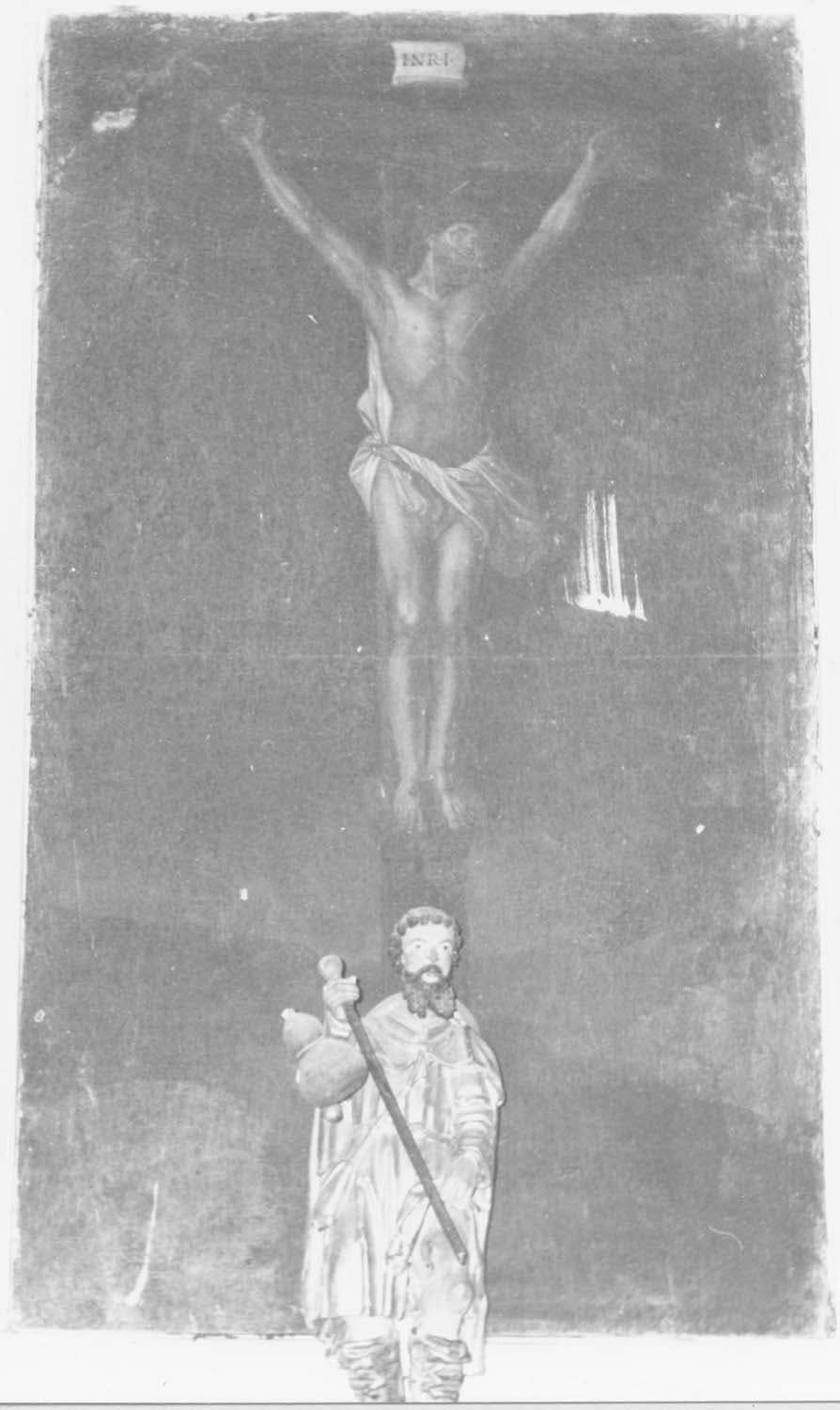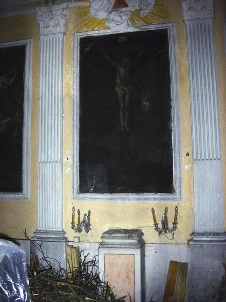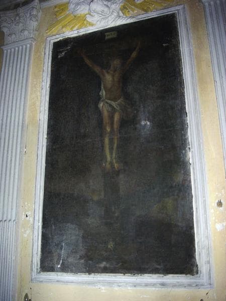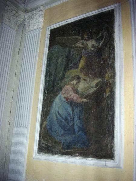 Ces trois toiles forment un ensemble et sont insérées dans un décor de stuc. La Crucifixion est peu lisible. L'Annonciation est dans les tons de bleu et rose. La Visitation est dans les mêmes tons