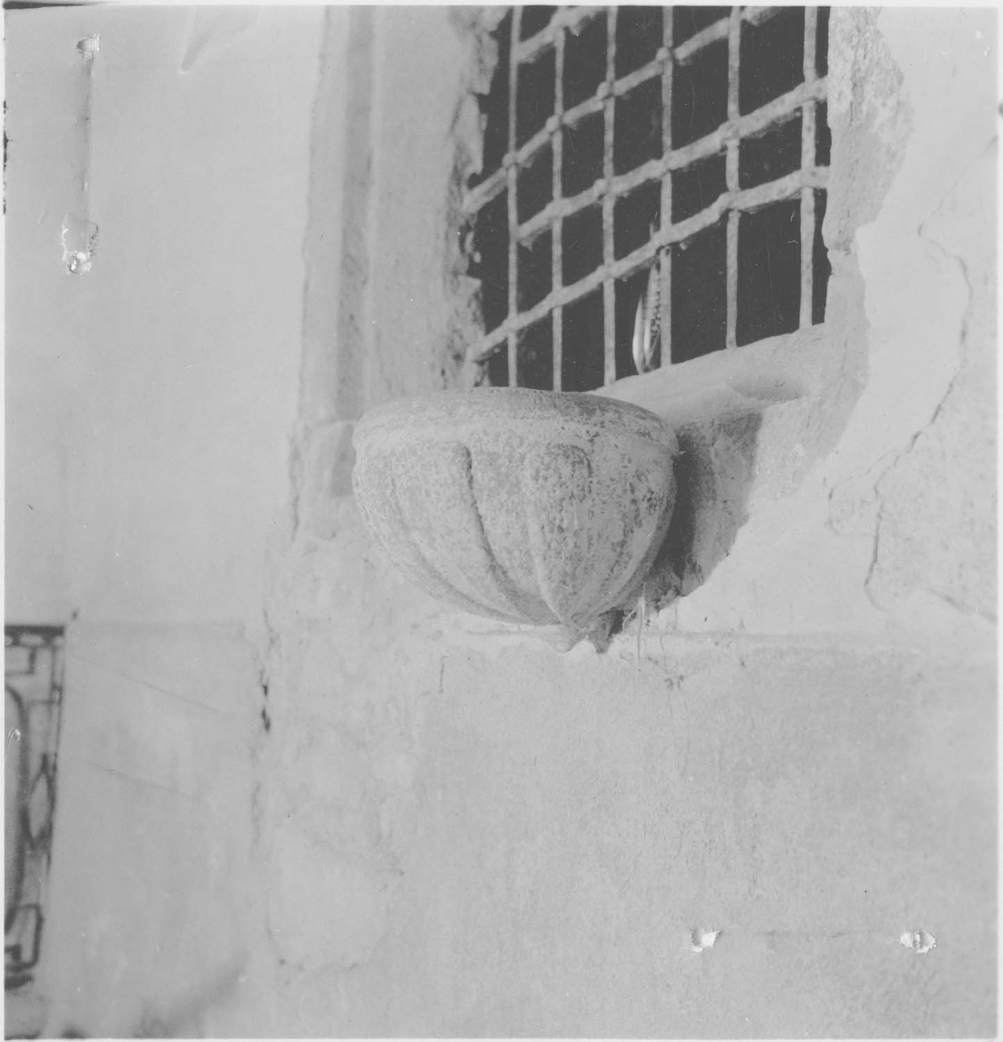 Ce bénitier, dont l'ouverture est ovale, présente un décor de godrons sur son pourtour.