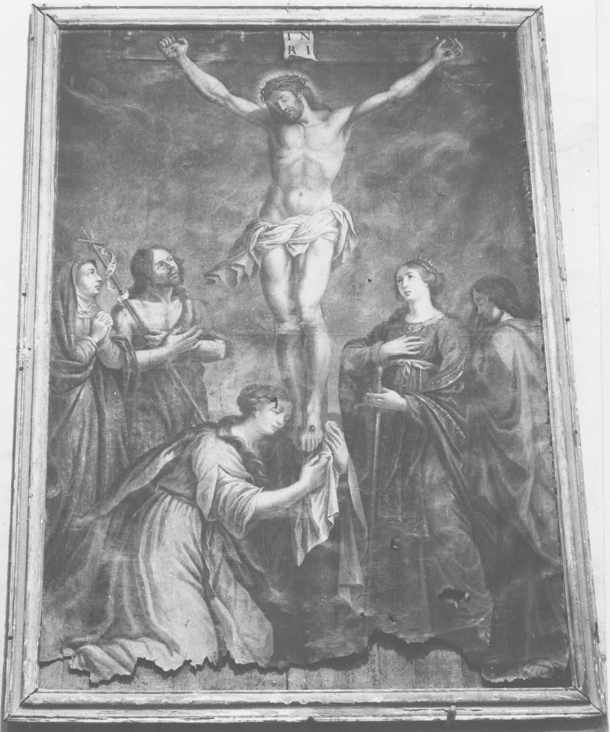 tableau : Le Christ en croix entre la sainte Vierge, saint Jean-Baptiste, sainte Madeleine, sainte Catherine et saint Jean