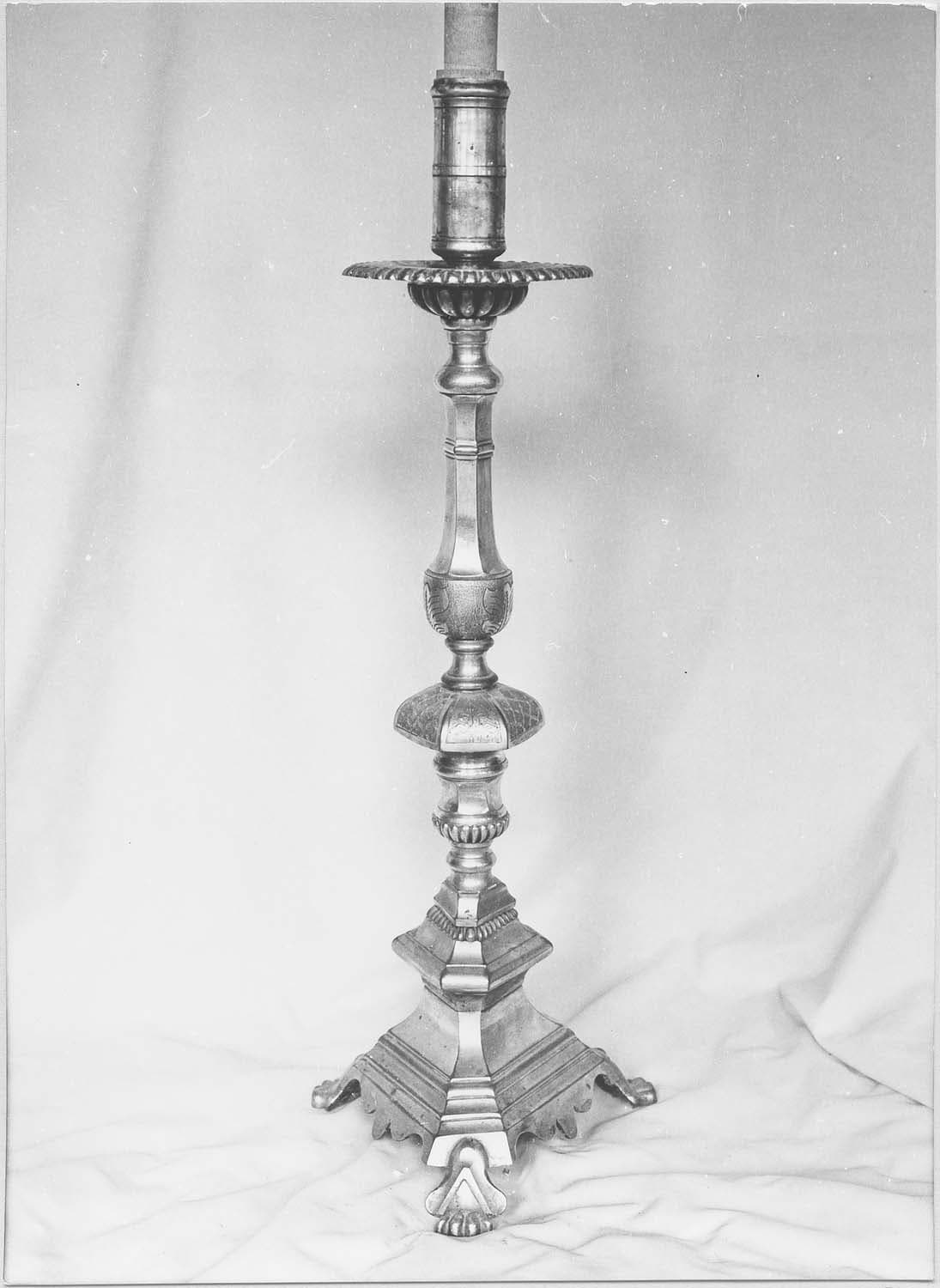 Le pied de ces chandeliers est triangulaire, posé sur des patins en forme de patte de félin.