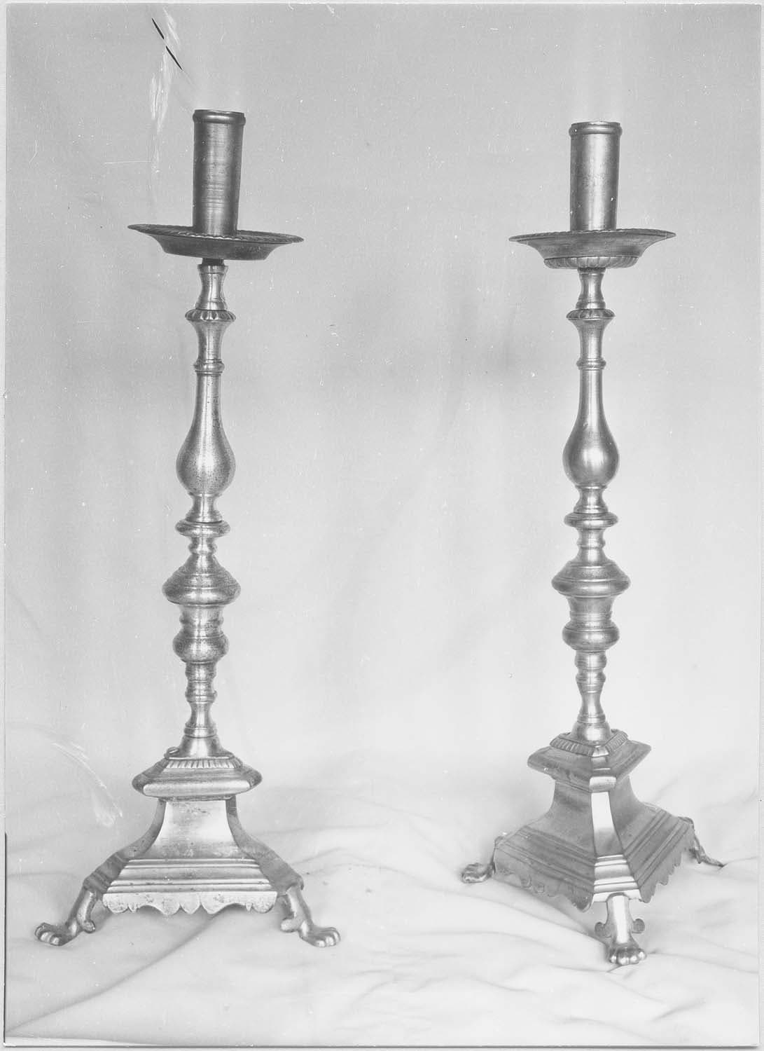 Ces chandeliers sont de forme classique, à pied triangulaire et à patins en forme de patte de félin.
