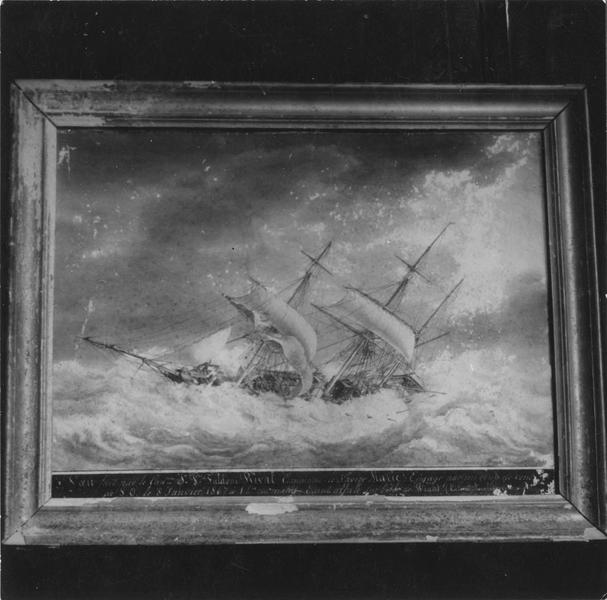 Inscription : Voeu fait par le Capne Jn Pre Faldoni RIVAL Commandt le navire Marie, engagé par un coup de vent de S.O. le 8 janvier 1867 à Ih. du matin étant affalé sur l'île de Wignt (Côte d'Angleterre).