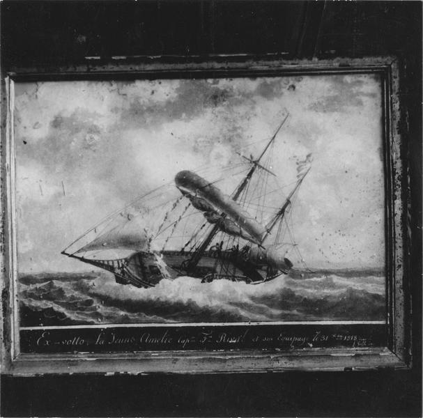 Inscription : Ex Votto, La Jeune Amélie Capne Fçois Rival, et son équipage le 31 Xbre 1818 dans le golfe de [...].