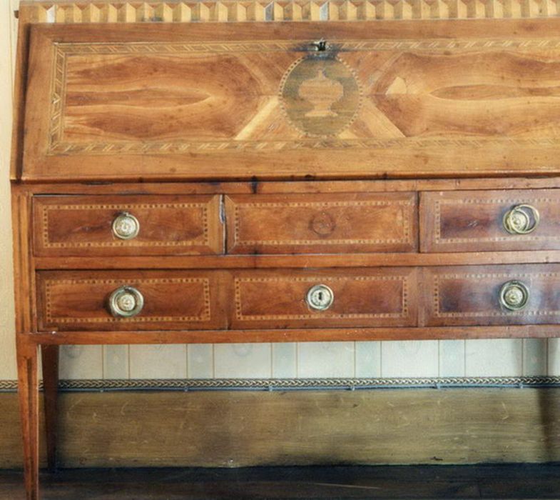 Cet élégant secrétaire très bien conservé possède deux rangées de trois tiroirs dont un a une ouverture à secret. L'abattant est décoré de citronier et citronier brûlé et les filets sont de la même matière. A l'intérieur, il y a une série d'étagères.