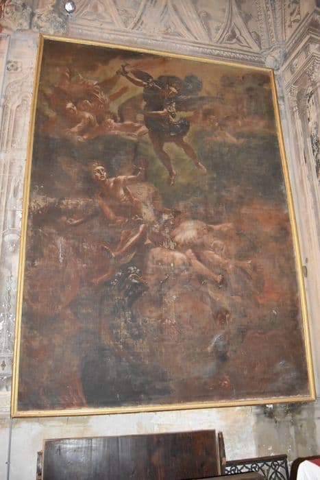 L'archange Michel entouré des troupes célestes repousse les anges rebelles.