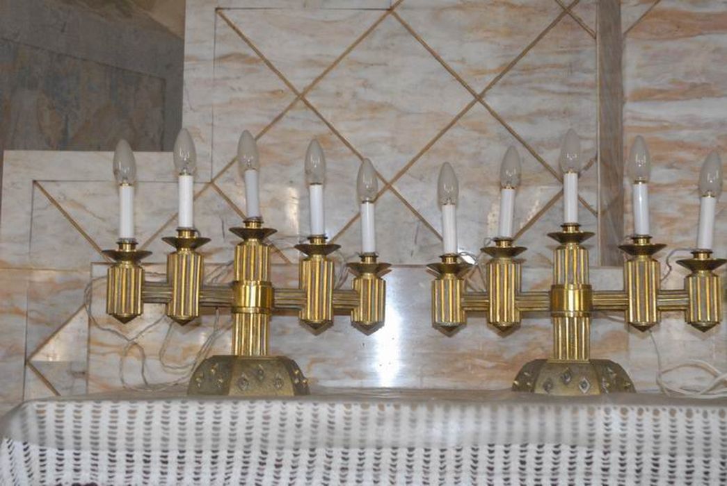 Garniture d'autel, chandeliers (2) à cinq lumières (bronze doré)