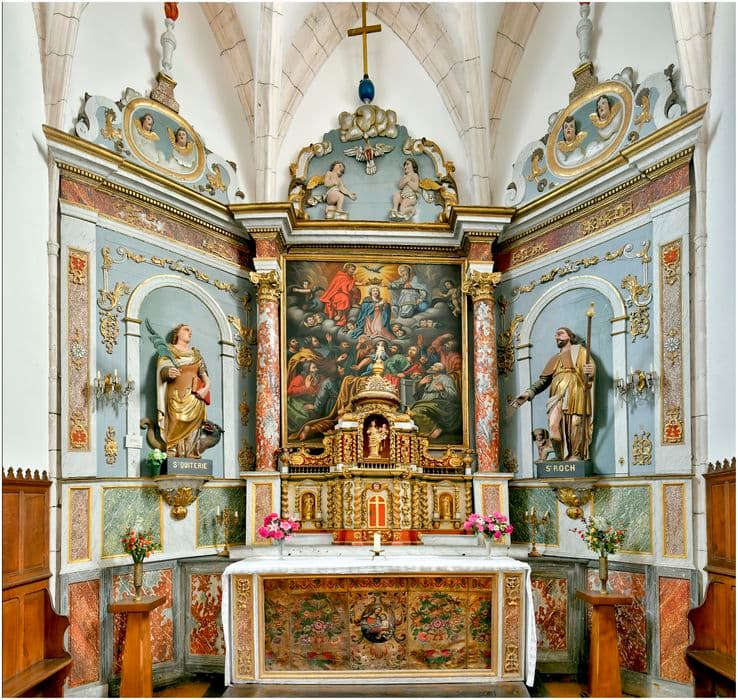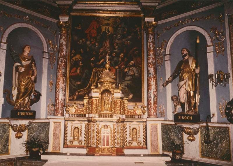tabernacle, exposition, 3 statues (statuette) : Vierge à l'Enfant, sainte Quitterie, saint Roch