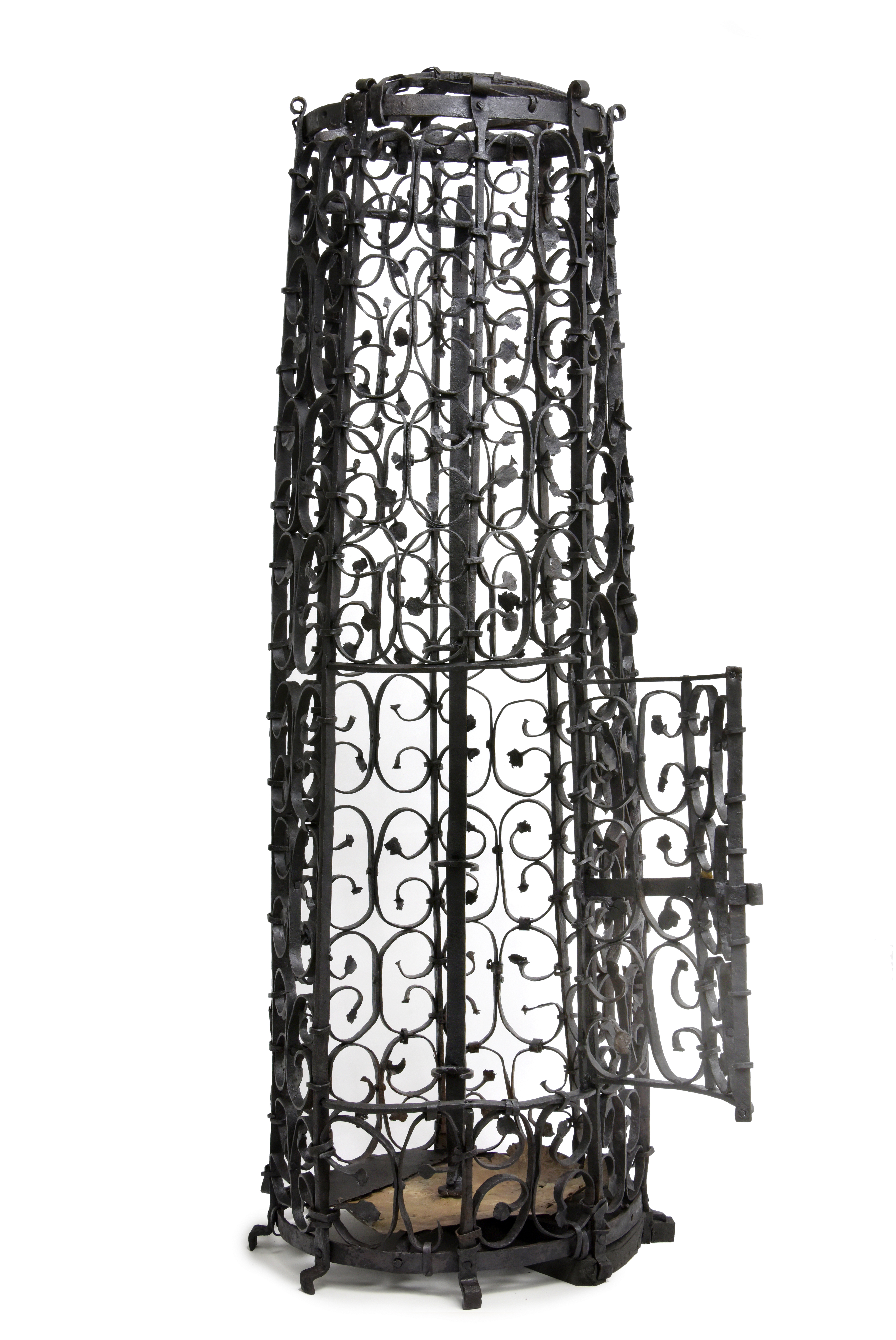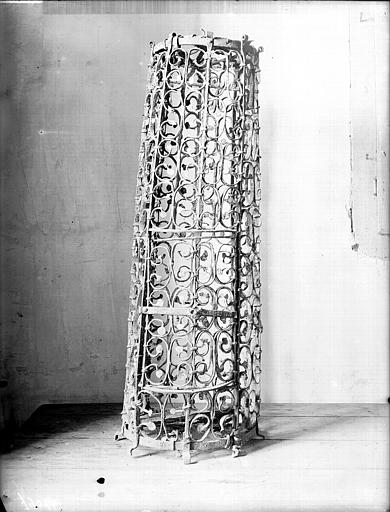 La tige est enveloppée d'un grillage cylindrique destiné à protéger le cierge.