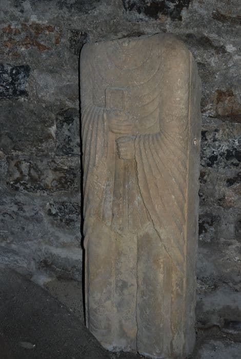 Dalle sculptée en bas reliefornée d'un personnage.