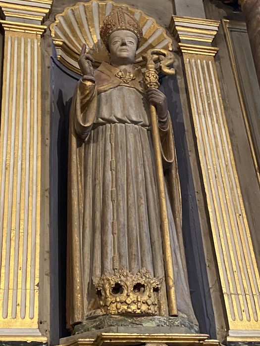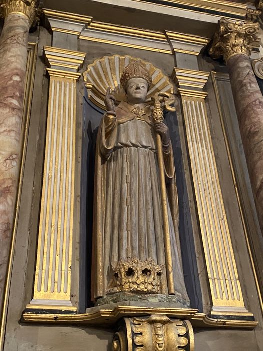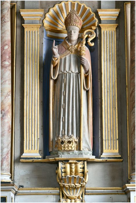 Peinture et dorure moderne, servant à harmoniser la statue avec le retable du 18e siècle sur lequel elle est placée.