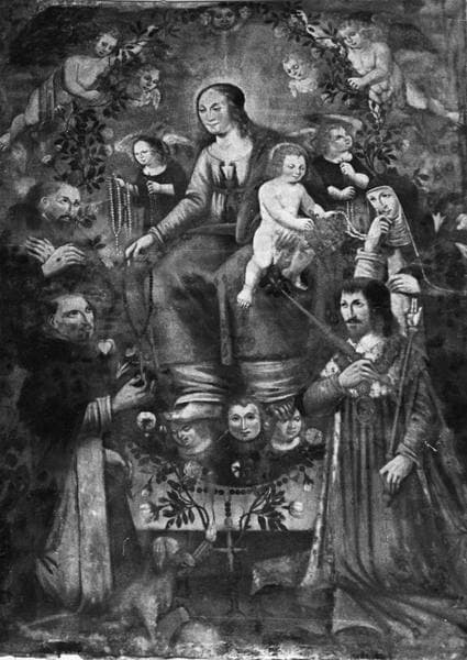 tableau dite Notre-Dame-de-Chipelet : Vierge à l'Enfant avec saint Dominique saint François et Louis XIII