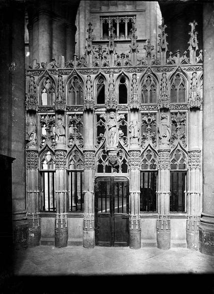 Clôture de la chapelle du Saint-Sépulcre, élevée par les soins du chanoine Roux, donateur également de l'autel et du retable du Sépulcre, dans la même chapelle. Il existe au Musée des Monuments Français un moulage de la clôture de la chapelle du côté droit du choeur : c'est-ce qui reste de l'ancienne clôture du choeur de l'évêque François d'Estaing, restée inachevée et transportée là.