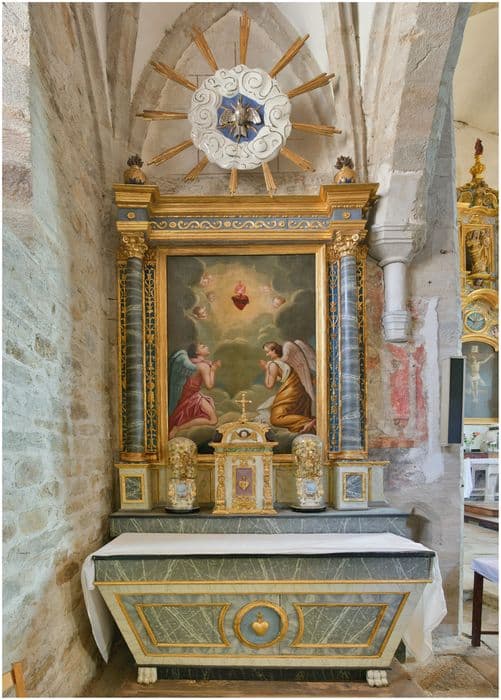 POP | Plateforme ouverte du patrimoineautel et retable d'une chapelle latérale nord, et tableau : Adoration du Sacré-Coeur