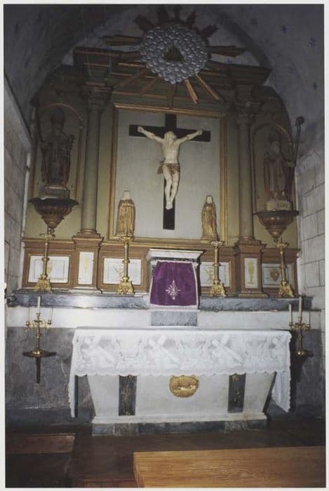 POP | Plateforme ouverte du patrimoineautel (maître-autel), tabernacle, retable, calvaire : Christ en croix entre la Vierge et saint Jean, et deux statues : Saint Eutrope et Saint Loup