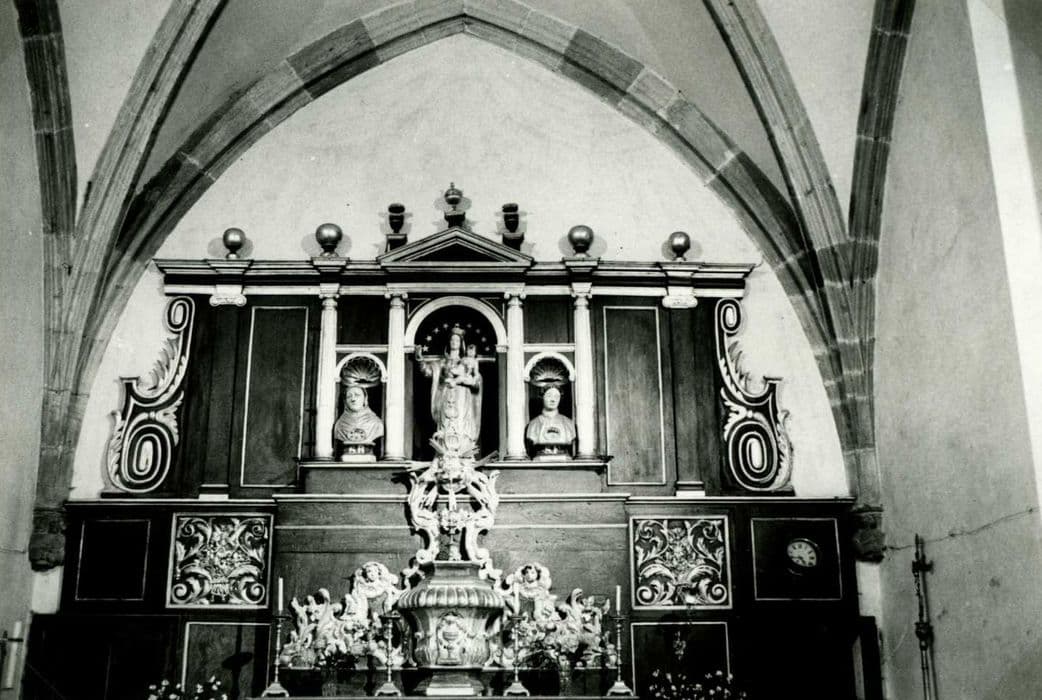 POP | Plateforme ouverte du patrimoineretable et tabernacle du maître-autel, statue : Vierge à l'Enfant, et deux bustes-reliquaires : Saint Robert ? et Saint Félix ?
