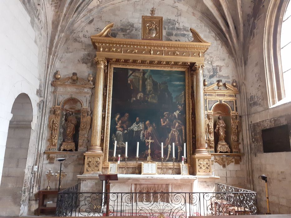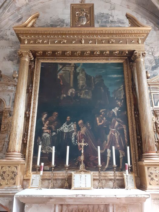 Cette toile fait partie du retable de l'autel de la grande chapelle du bas-côté sud.