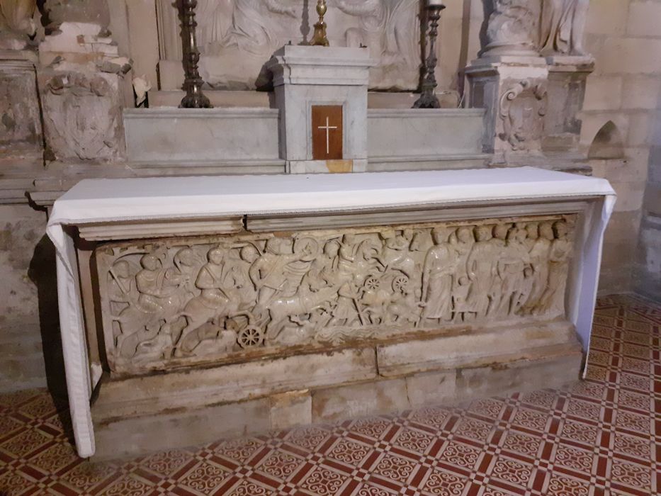 Sarcophage chrétien servant d'autel dans la chapelle Saint-Genès.