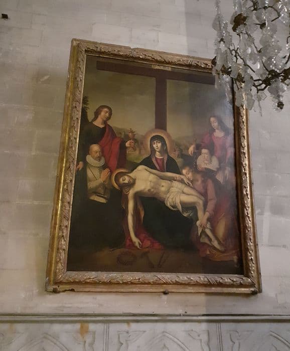 tableau, cadre : Vierge de Pitié entourée d'un couple de donateurs et de leurs saints patrons
