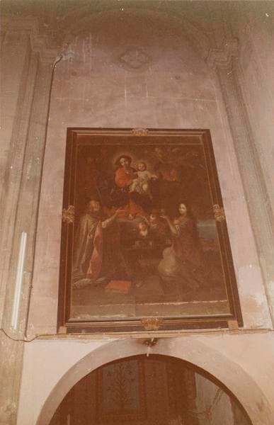 tableau : la Vierge et l'Enfant Jésus entre sainte Madeleine et un saint évêque entourés d'angelots