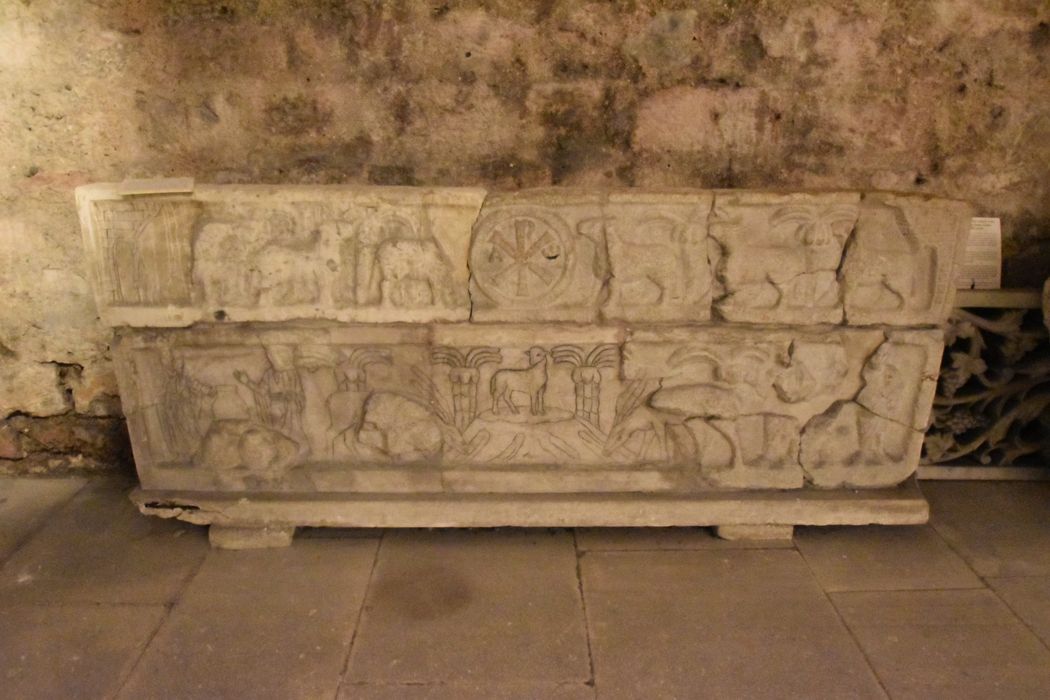 En pierre de Cassis. Allégorie avec brebis et cerfs.