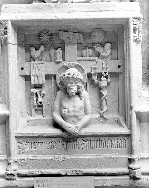 POP | Plateforme ouverte du patrimoineautel, retable, 4 statues : sainte Anne, Vierge à l'Enfant, saint Maurice, sainte Marthe avec la Tarasque