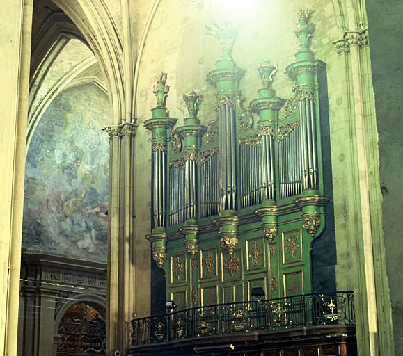 En 1759, Jean Eustache reconstruit la façade de l'orgue de Isnard (1743), coté mur sud. La partie instrumentale est vendue en 1857 au curé de Saint-Trophime d'Arles après reconstruction de l'orgue de Saint-Sauveur par Pierre Alexandre Ducroquet (1855). Aristide Cavaillé-Coll intervient sur l'instrument en 1880, puis les maison Michel-Merklin et Kuhn (1917) et Dunand (1983).