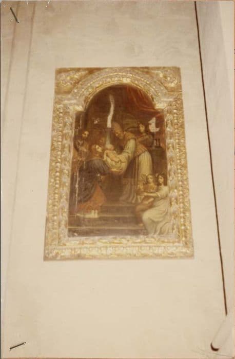 Vierge ; Enfant Jésus ; saint Josepg ; prêtre ; temple