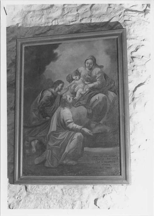 tableau : Deux adorateurs agenouillés au pied de la Vierge à l'Enfant