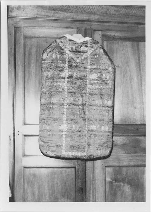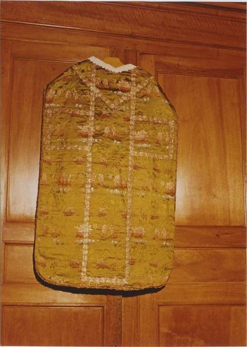 Chape de soie verte à décor floral.