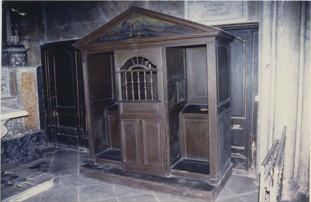 Le confessionnal est orné d'un fronton comportant une peinture représentant la Madeleine.