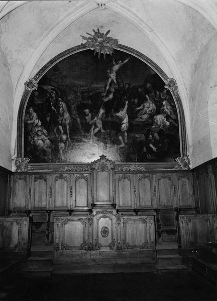 mur du chevet, au dessus des stalles