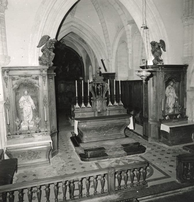2 autels et retables (en pendant, autels secondaires du Sacré-Coeur et de saint Joseph) : anges adorateurs