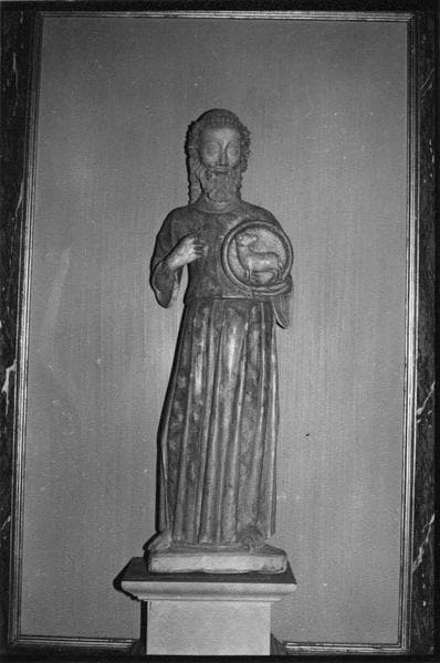 statue en pied de saint Jean-Baptiste tenant devant sa poitrine un disque sur lequel est l'agneau