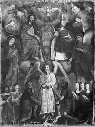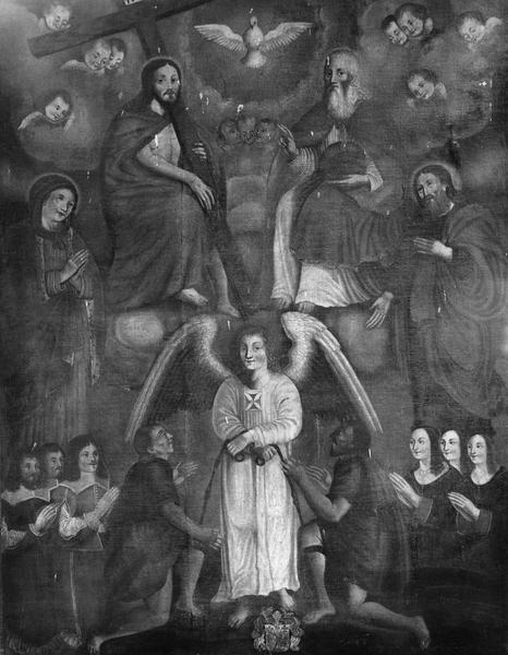 tableau : la Trinité, la Vierge, saint Jean, et deux groupes de donateurs