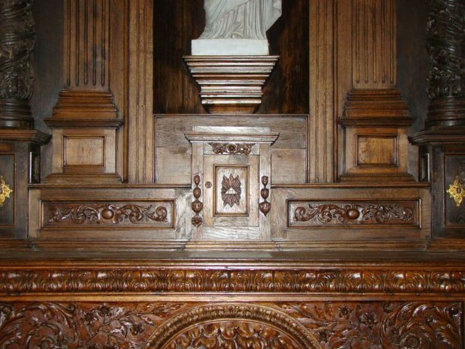 Retables à deux petites colonnes torses et deux pilastres cannelés, soutenant des pots à feu, de part et d'autre d'un arc cintré
