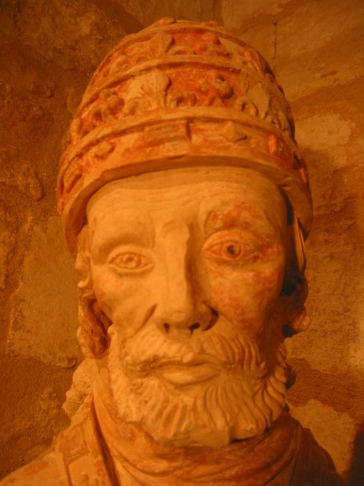 Cette statue a été trouvée à l'occasion de sondages de fouilles en octobre 2000, au sud de la nef. Elle est caractéristique de la fin du 15ème siècle ou du début du 16ème siècle. Elle a été déposée dans l'église.