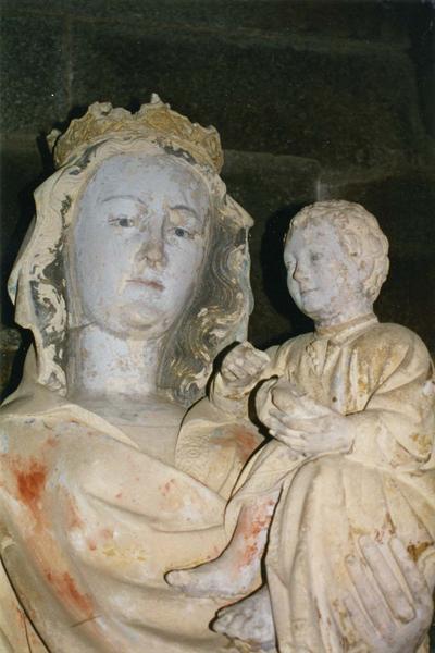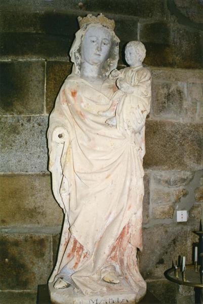Statue : Vierge à l'Enfant, pierre avec traces de polychromie, première moitié du 15e siècle.
