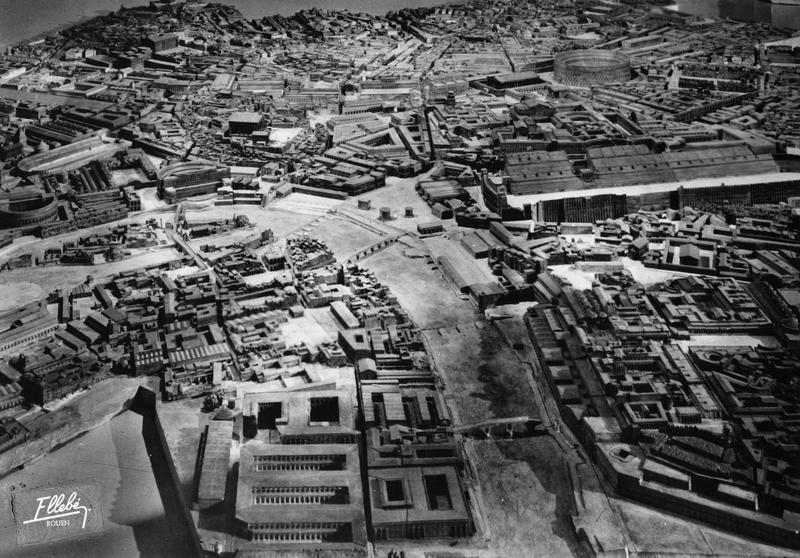Paul Bigot. "Reconstitution en relief de Rome antique". 1937 ; Sophie Madeleine et Philippe Fleury, "Le "Plan de Rome" de Paul Bigot à l’Université de Caen et son double virtuel : de l’objet patrimonial à l’outil scientifique", In Situ [En ligne], 17