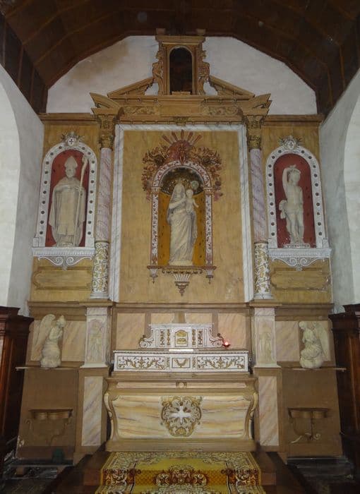 POP | Plateforme ouverte du patrimoineautel (maître-autel), retable et trois statues : Vierge à l'Enfant, Saint Sébastien et Saint Denis