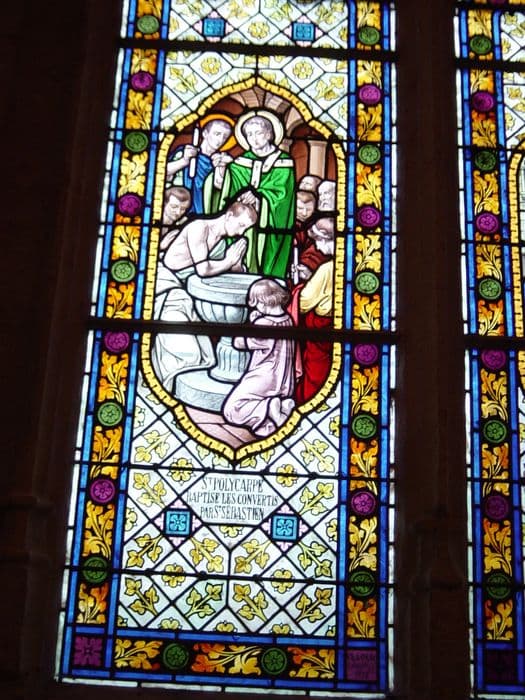 POP | Plateforme ouverte du patrimoinedeux verrières n°3 : Saint Polycarpe baptise les convertis par saint Sébastien et Saint Sébastien rend la parole à Zoé.