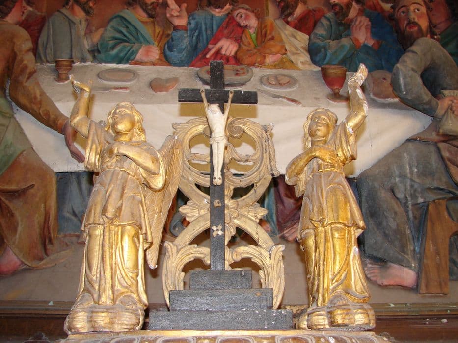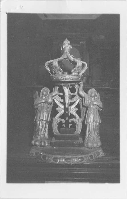 Exposition du Saint-Sacrement en bois, avec un crucifix en ivoire.