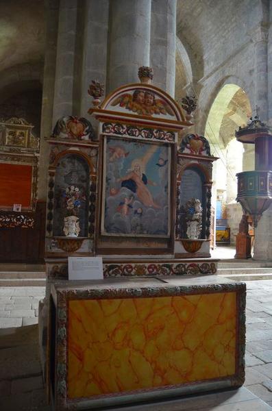 Retable, statue de Timothée, statue de Blaise et tableau ex-voto. Adossé à un pilier du côté nord de la nef, c'est un petit retable en bois polychrome dans lequel est enchâssé un tableau nettement postérieur, à en juger par les costumes des personnages représentés qui évoquent le règne de Louis XV. Les deux saints sont placés dans des niches situées de part et d'autre du tableau. Cadre sculpté de la toile en bois polychrome.